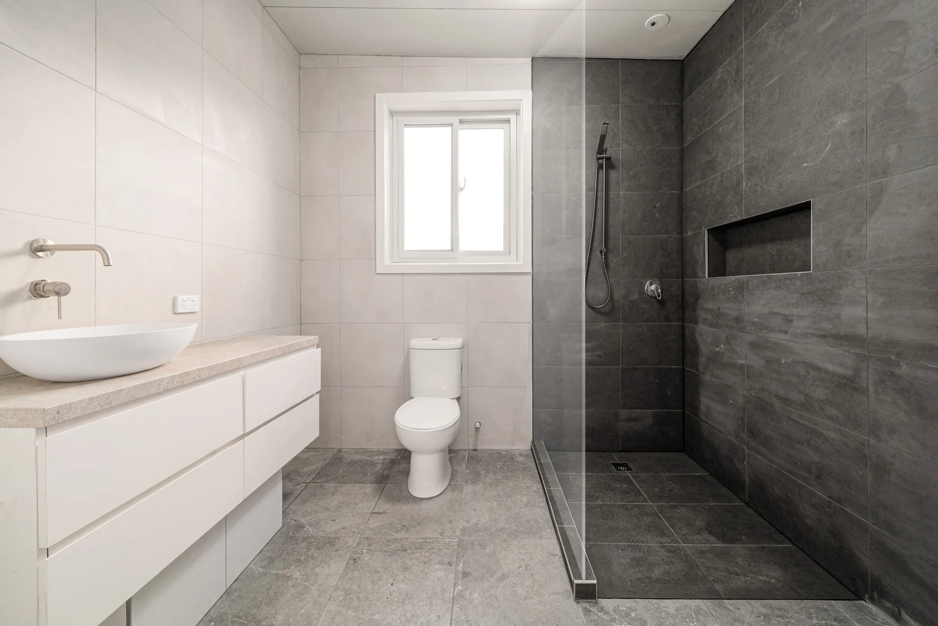 - A massive full size stylish ensuite with titled walls