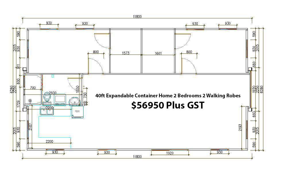 The Brighton 40FT Premium Expandable Container Home is the largest of our homes at 74m2, we have other 40FT floor plan variations available.